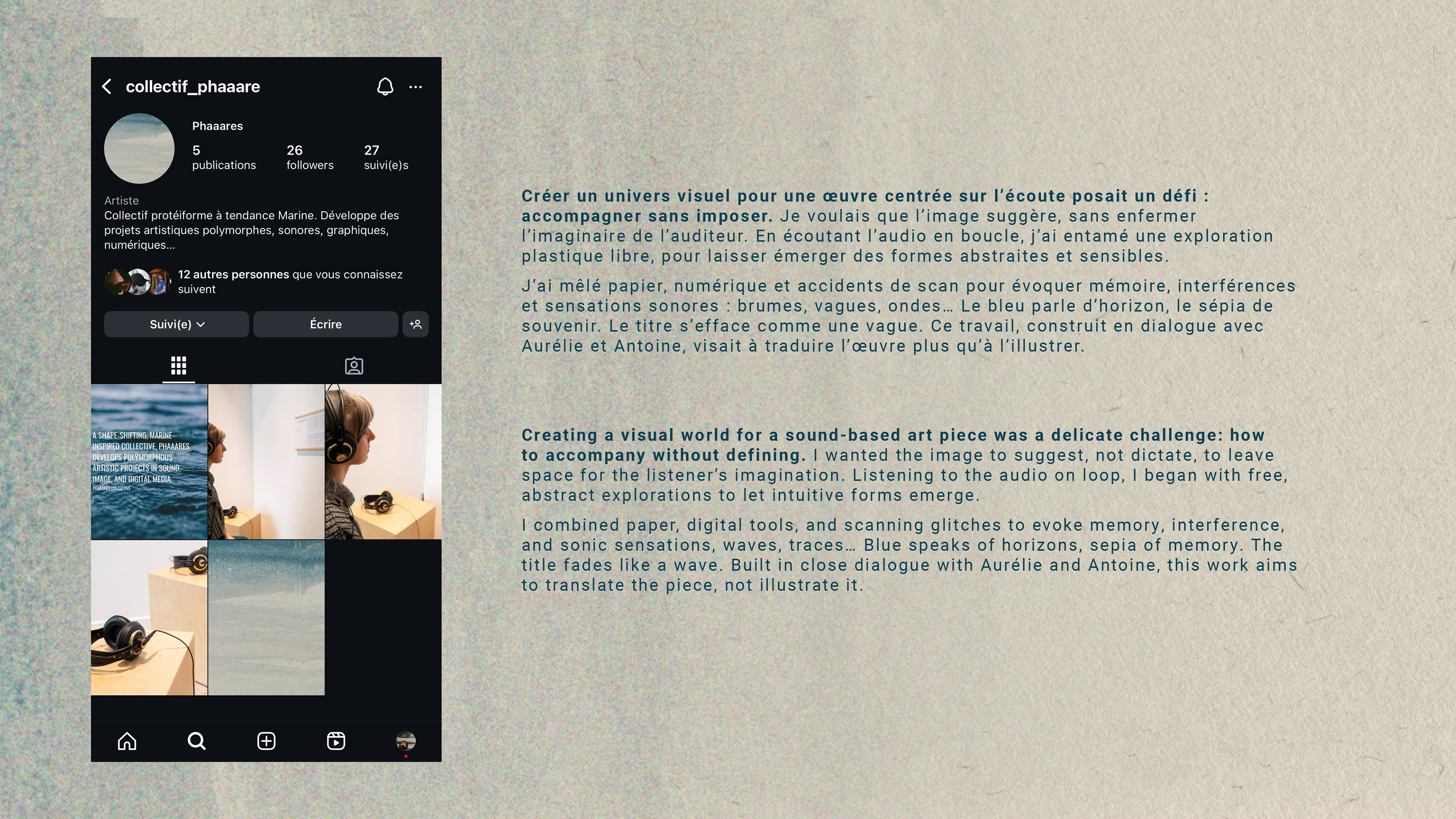 Lili, Life Past Filter and I founded a collective named "Phaaare", a shape-shifting, marine inspired collective. We develops polymorphous artistic projects in sound, image and digital media.